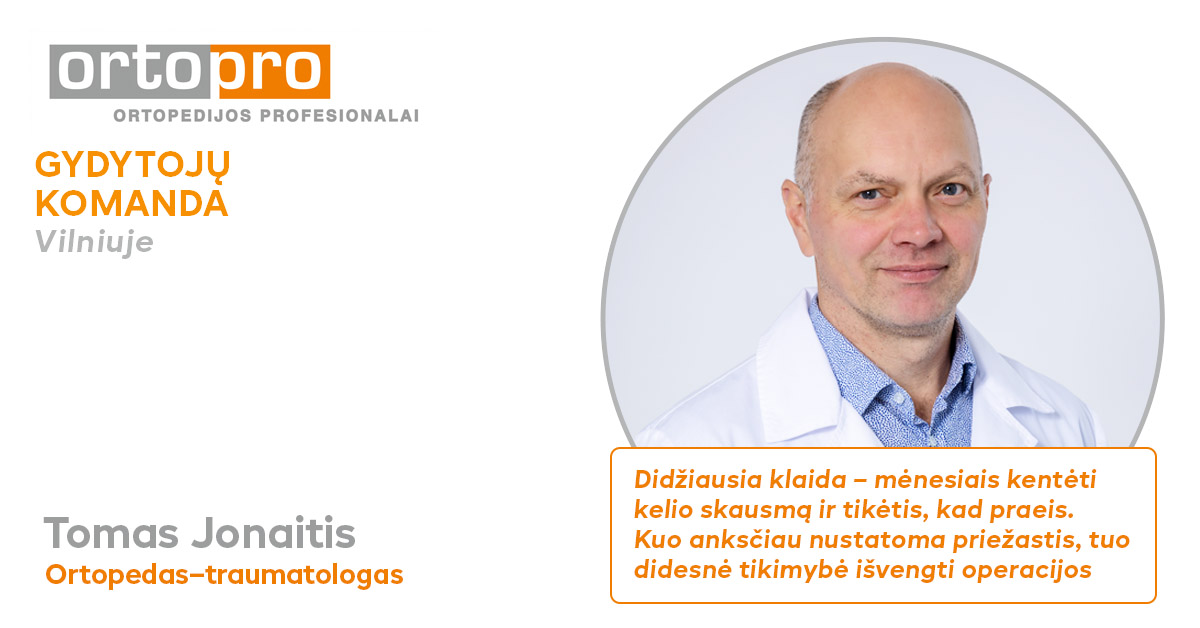 „Daugelis žmonių mano, kad artrozė yra senėjimo požymis ir išlieka pasyvūs nieko nedarydami. Arba vadovaujasi klaidinga nuomone, jog daug judant dėvisi sąnariai. Tačiau yra prieštaringai – skausmas nereiškia, kad turėtume likti sėslūs. Būdami fiziškai aktyvūs, galite sumažinti sąnarių įtampą, o tai gali užkirsti kelią ligos vystymuisi arba sulėtinti ją“, – pataria „Ortopro“ gydytojas.